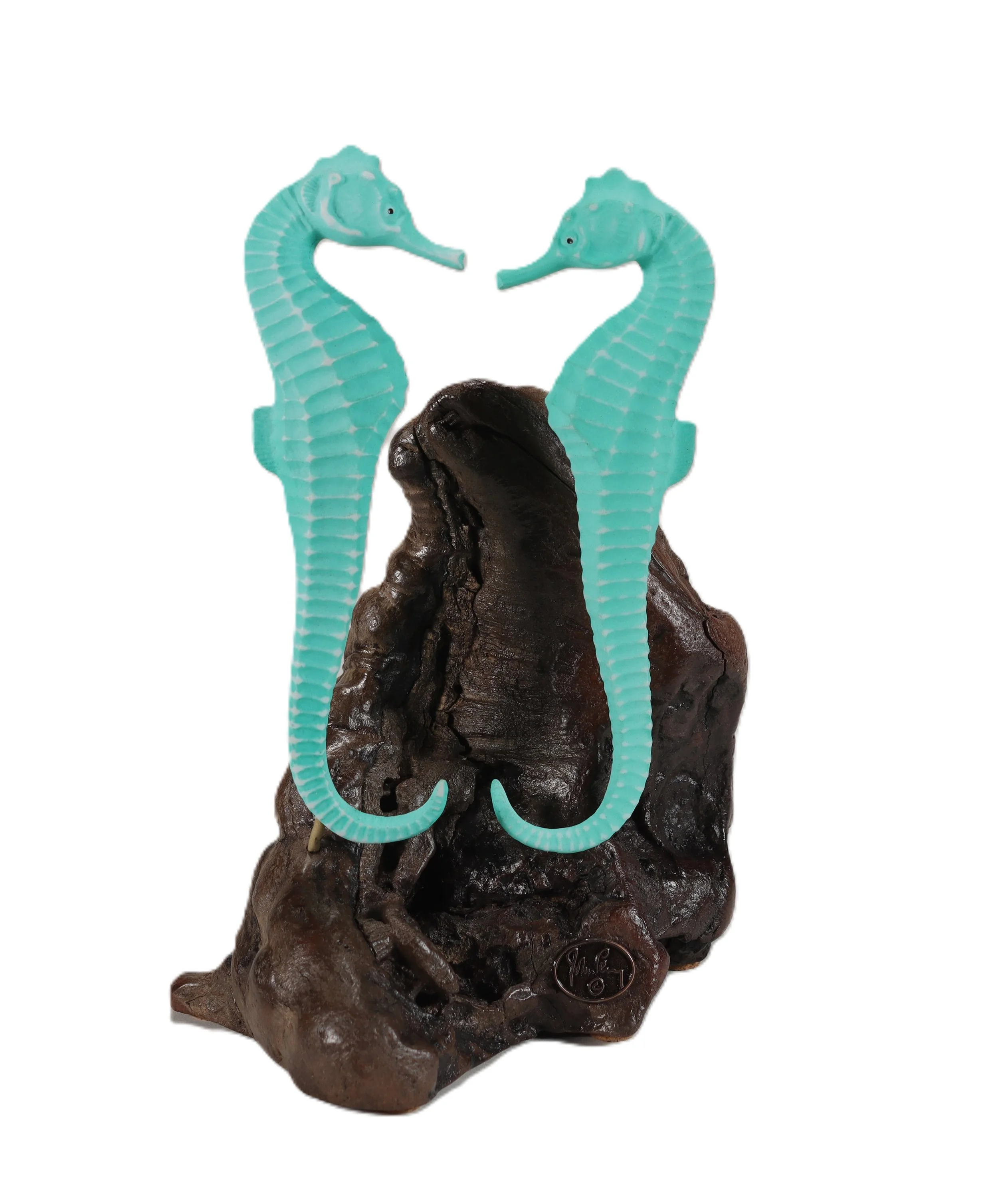 Each Seahorse is about 6 inches tall and the whole piece with the base is about 7 inches tall.